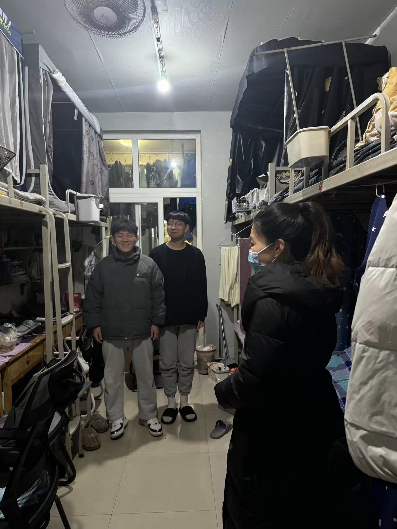 在安全排查工作中,辅导员们深入学生宿舍,仔细检查每一处可能存在的安全隐患。排查内容涵盖宿舍卫生、大功率用电器、门窗安全以及易燃易爆物品等多个方面。此外,辅导员们还强调了宿舍内不得饲养猫、犬等宠物,以维护宿舍的公共卫生和秩序。在排查过程中,辅导员们不仅关注安全隐患,还关心学生的生活和学习情况。他们详细询问了同学们的学习进度和生活状况,提醒同学们要注意身体健康,加强体育锻炼,预防感冒等疾病,并鼓励同学们认真学习,争取取得优异成绩。