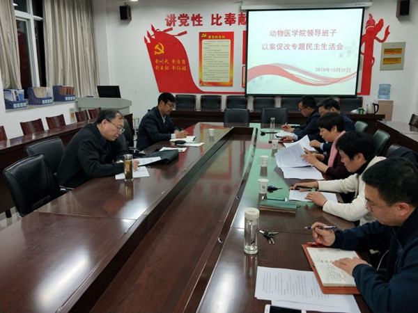 按照学校《关于召开处级党员领导干部以案促改专题民主生活会的通知》要求,10月31日晚6:30,动物医学院在龙子湖校区生工组团C401会议室召开学院领导班子以案促改专题民主生活会。校党委书记穆瑞杰、党委组织部部长戴天增到会指导,学院领导班子成员参加会议。会议由学院党总支书记王春明主持。