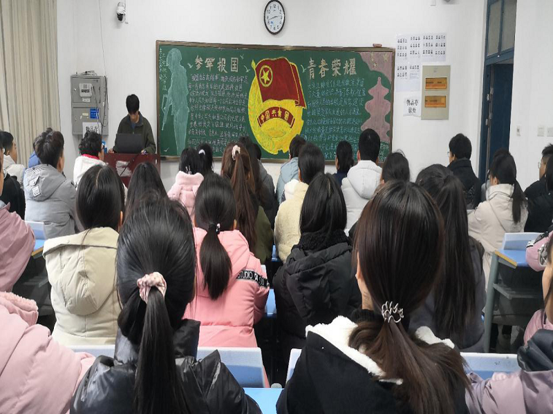 2020年12月17日下午两点半到四点,我院组织20级各班在团课教室中开展团课学习活动,本周团课是以“参军报国 青春荣耀”为主题,开展此次团课的目的是向同学们讲解有关入伍的政策,引导青年团员了解国防,关心国防,积极响应国家号召。